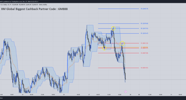 The chart provided depicts Gold's price movement (XAU/USD) on a 15-minute timeframe, leveraging key technical indicators such as pivot points and Bollinger Bands. These tools offer valuable insights into potential market direction, key support and resistance levels, and volatility.